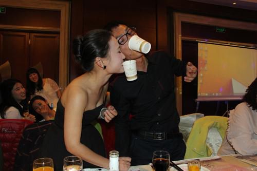 年会现场,两张西式长桌位于宴厅中央,长桌上摆放着蜡烛和花瓣,这场西式自助餐式的“烛光晚宴”彰显着传媒公司的优雅、时尚与品位。瑞翔传媒的“女神们”纷纷身着晚礼服,脚踏高跟鞋,华丽登场。不禁令人感叹,这些平日里独立能干的女汉子们原来个个都是女神啊!