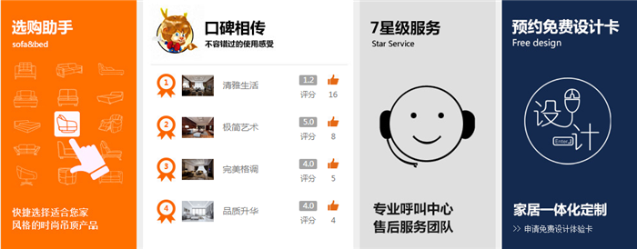 ▲从选购助手到口碑相传,再到7星级服务,以及预约免费设计卡。法狮龙一直在做的就是给用户最贴心的服务。