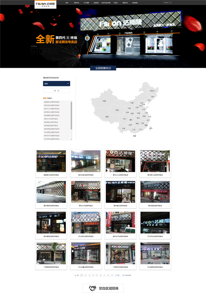 ▲用户点击自己的所在省市就可查找周边的法狮龙线下门店。更有实景照片展示。