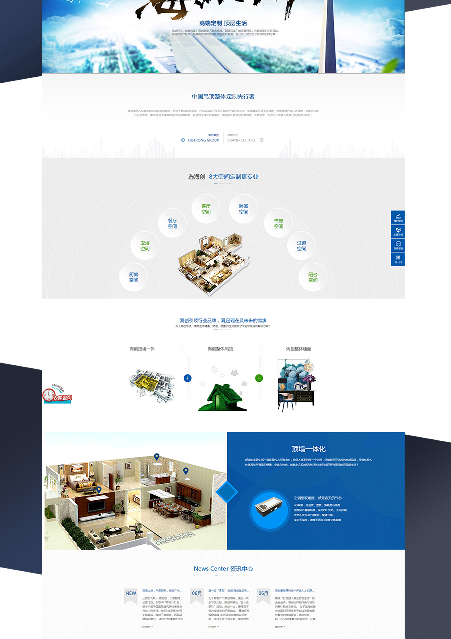 我们在海创官网上新增免费设计功能,增强用户粘性,提高网站实用性;将产品置于全屋空间展示产品,体现整体定制概念,用户体验更加直观。
