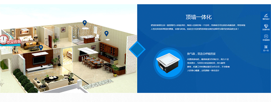 结合三维全景效果,点击空间中的小图标即可跳转出产品的具体信息,更加直观形象
