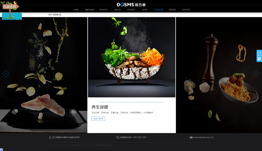 ▲用三张高质量的食物图片展示德西曼的养生厨房版块,配合德西曼的星厨集成灶,效果更佳哦。