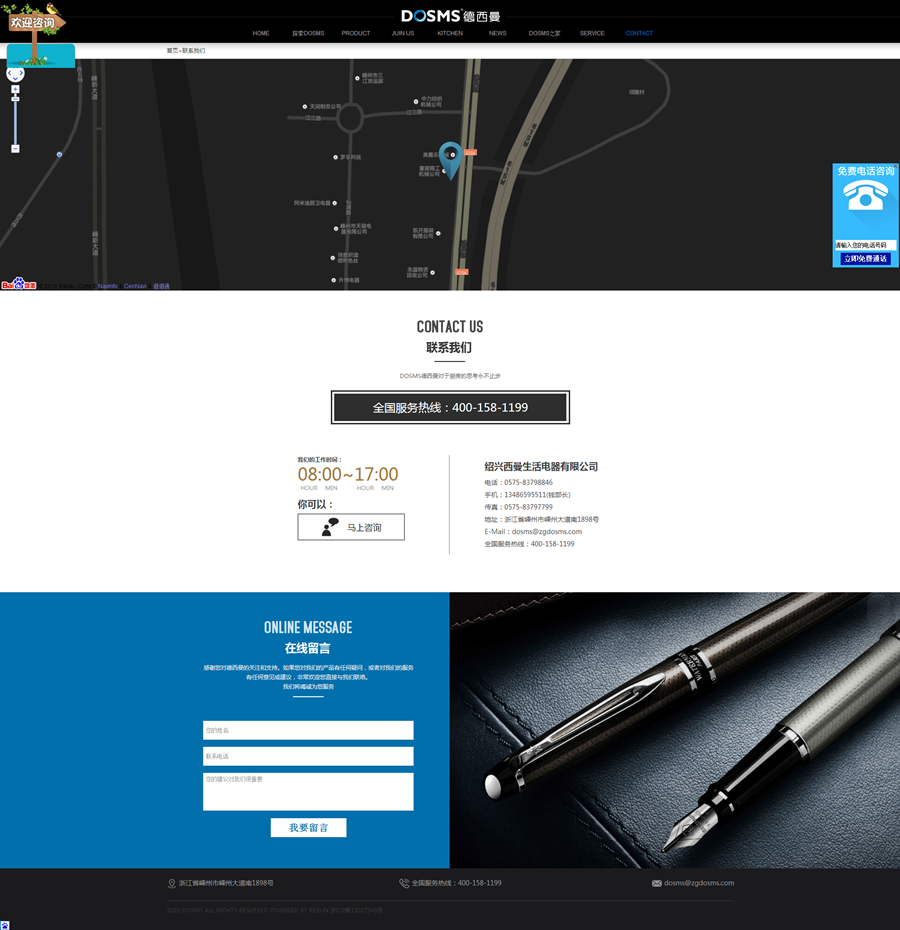 ▲德西曼首页运用JS技术,动态展示,使页面更富有灵动感。入口处设置蓝色光标,增加科技感。