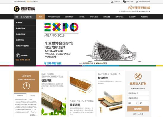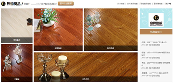 瑞翔传媒根据现今互联网趋势,将高牌地板官网采用商城形式,产品信息更加直观明朗,首页添加在线预约和私人订制入口,增强了用户互动性。